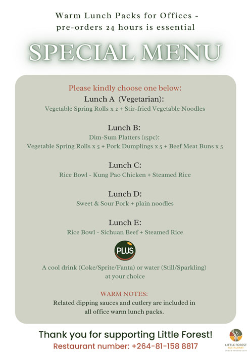 | Cuisine Pre-orders | eat@little-forest-garden.com or op@little-forest-garden.com |