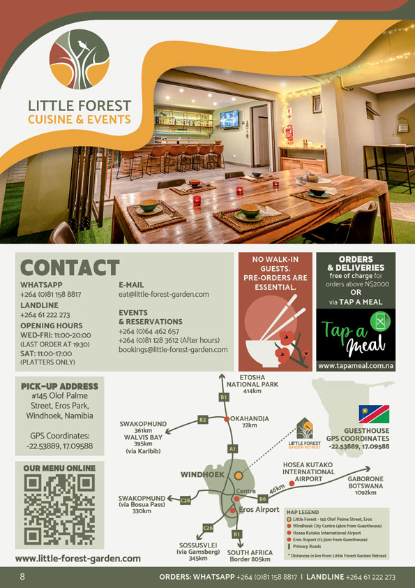| Reservation & Events | +264 64 462 657 / (Mon.-Fri.: 8:00-17:00) |